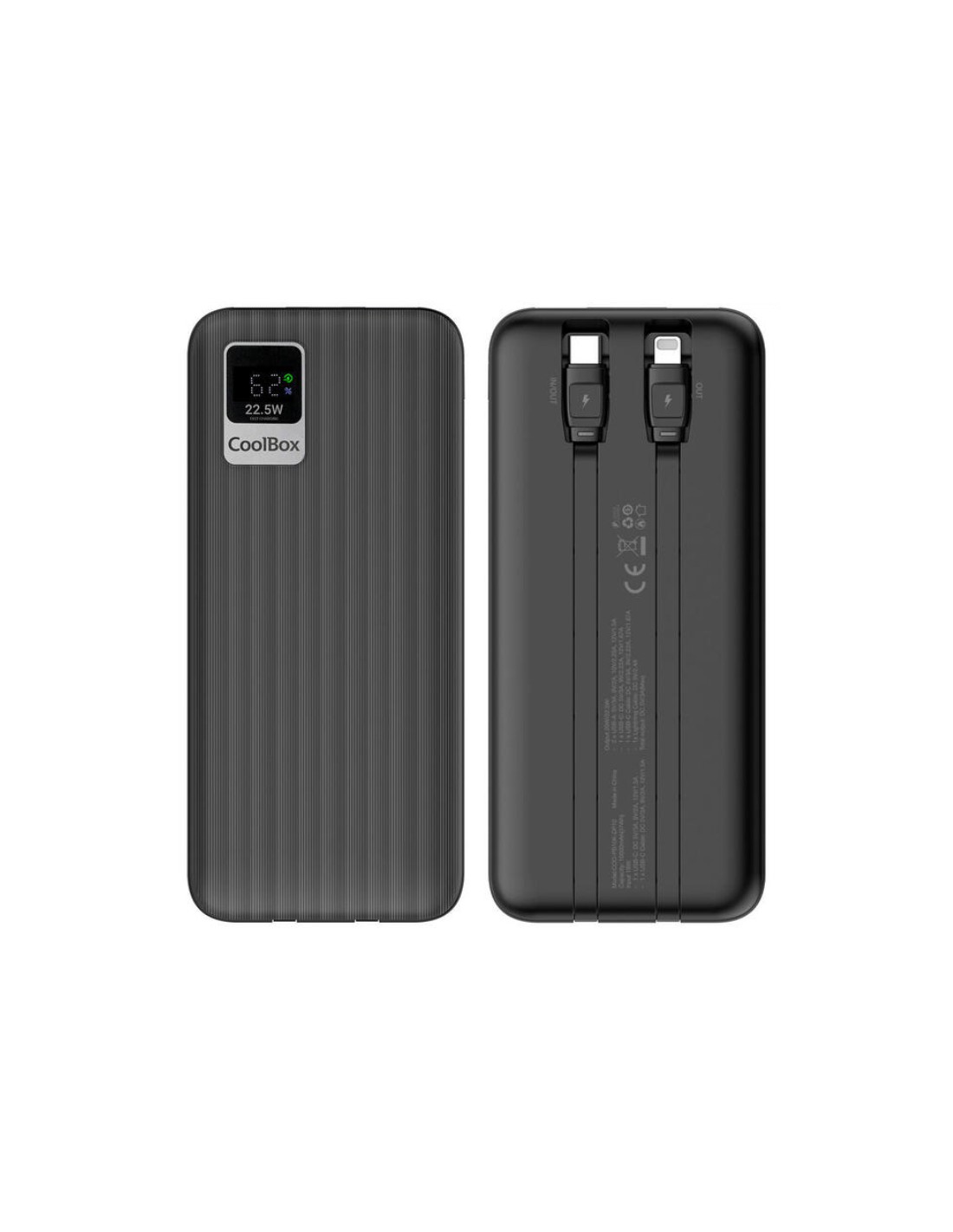 CoolBox POWERBANK DP10 10000MAH LCD+CABLES INTEGRADOS USB-C+LIGHTING NEGRO CARGA RAPIDA.