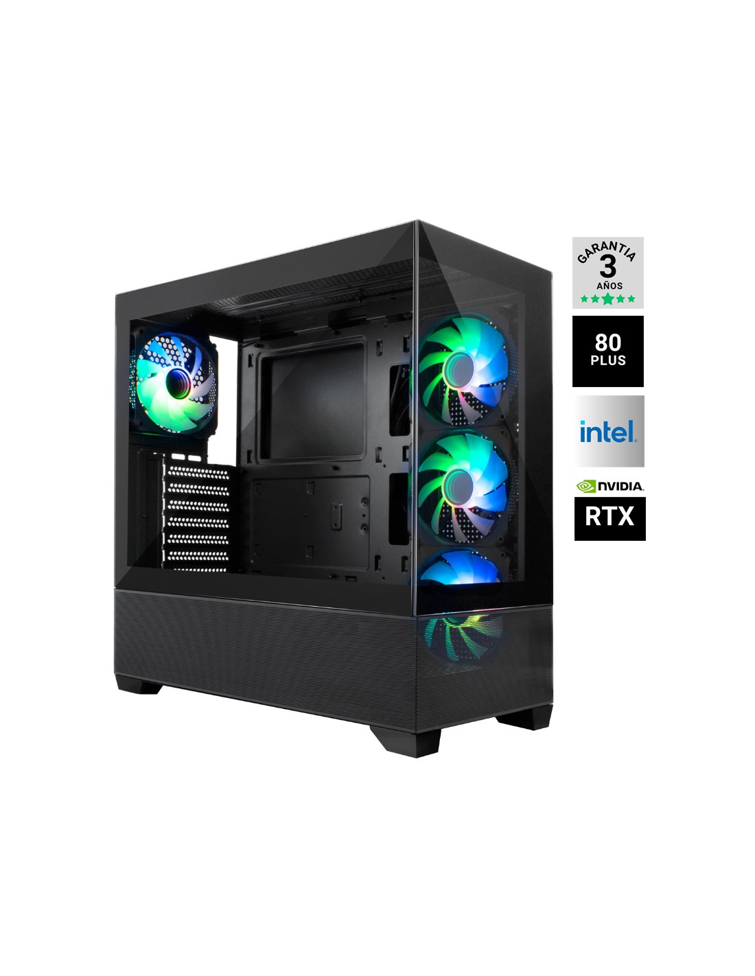Procesador: Intel Core I7-14700F 2.1GHZ, Ventilador CPU: Ventilador gaming SNOW IV Negro, Chipset: Intel B760, Memoria: DDR5 32GB 5600MHZ, Disco duro: SSD M.2 1TB NVME, Vga: RTX 5070 12GB GDDR7 OC WINDFORCE RGB Negra, Fuente 750W/62.5A 80 + BRONZE NEGRA, x4 Ventiladores, Freedos, Caja: Caja GAMING ATX GA250 COOLBOX NEGRA. PRODUCTO SUJETO A CANON DE 5,33€ QUE SE APLICARA EN FACTURA.