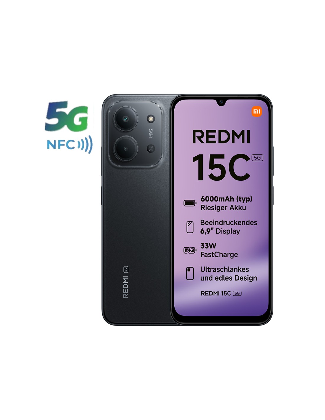 SMARTPHONE 6.9" XIAOMI REDMI 15C 4GB 256GB NFC 5G NEGRO PN: REDMI 15C 5G 4-2 EAN: 6932554458614