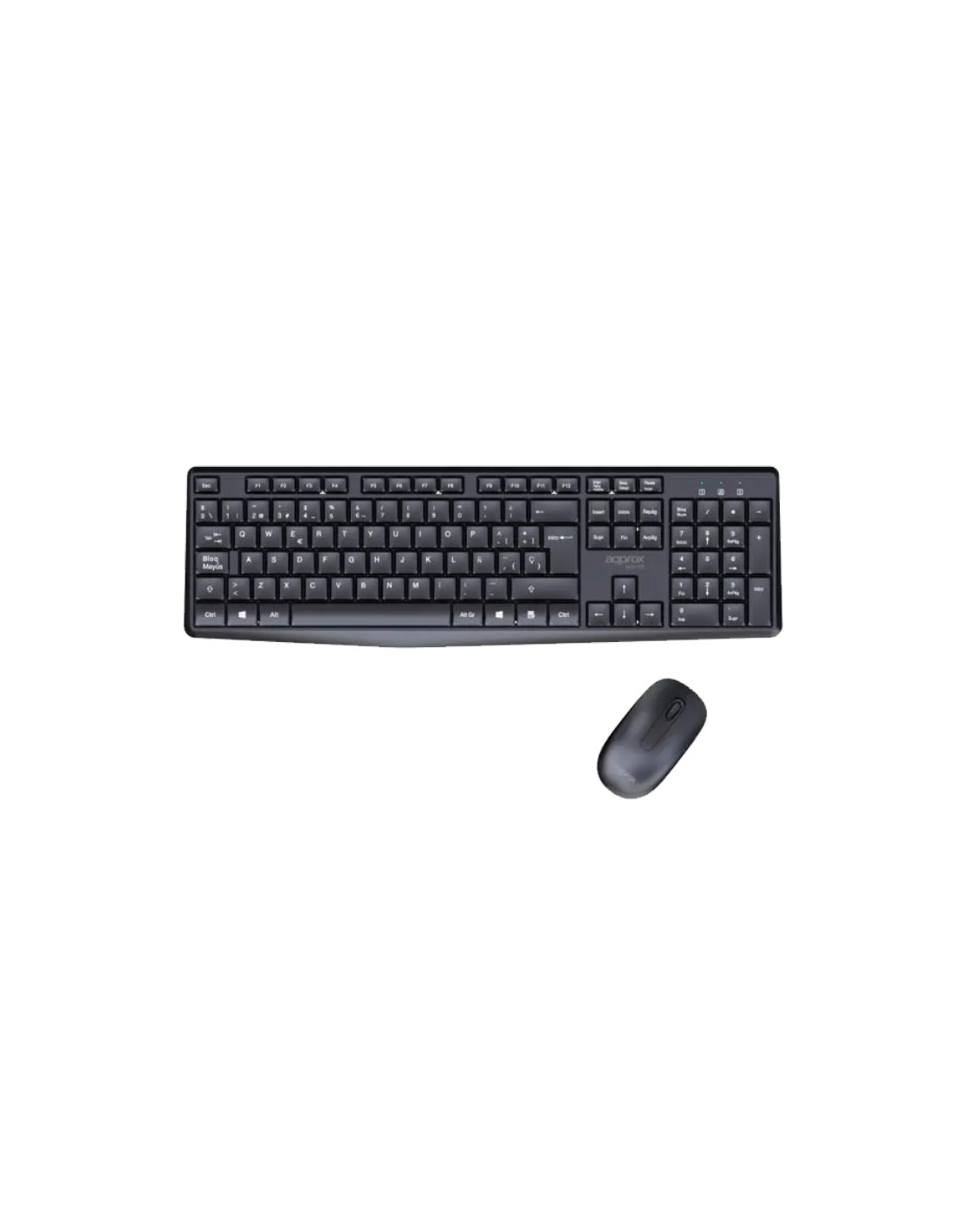 El APPMX420B es un kit formado por un ratón inalámbrico equipado con un sensor óptico de alta precisión de 1000 DPI y teclado inalámbrico con una distancia de funcionamiento hasta 10 m.
